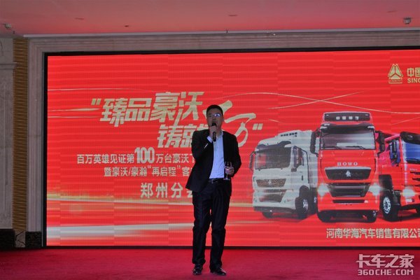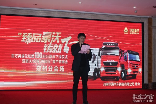 “臻品豪沃,铸就百万”是本次活动的主题,中国重汽集团销售部河南分公司总经理赵青,河南华海汽车销售有限公司总经理刘俊杰,郑州当地物流公司,运输公司代表及新老客户共计100余人参加本次活动。