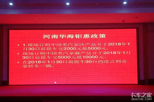 2.现场订购中国重汽豪瀚产品的客户交5000元抵10000元。