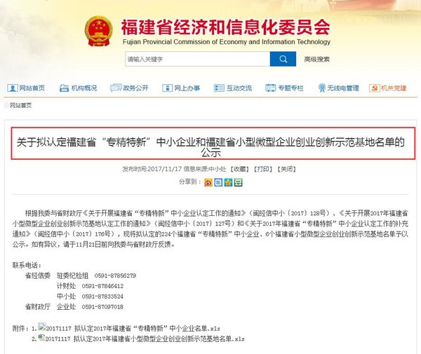 近日,省经信委发布了《关于拟认定福建省“专精特新”中小企业和福建省小型微型企业创业创新示范基地名单的公示》,溢通环保科技(莆田)有限公司被认定为福建省“专精特新”中小企业,其中溢通被认定为精细化企业。