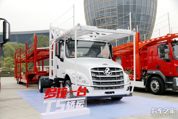 会场外,34台乘龙汽车在柳州国际会展中心依次排开,充分展现出东风柳汽打造精品车型的魄力与雄心。值得关注的是,继2017年11月超级轻量化卡车乘龙H5上市之后,作为准重型平台双子星组合的另一款产品,乘龙T5也在本次年会亮相。定位于适用型长头车的乘龙T5,主要面向轿运、区域配货和资源运输等行业,同时匹配天然气和柴油两种动力。年会现场展出的乘龙T5长头轿运车相比普通牵引车可多拉一位,运输效率高,每年能帮客户可多赚10万以上,且相比中置轴轿运车驾驶起来更为轻松。后续将全面投放市场,非常值得期待。
