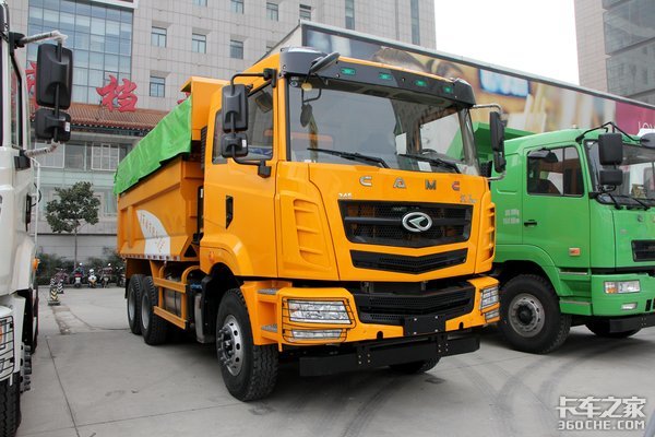 汉马H7 6X4自卸车,搭载了汉马CM6D18 345马力发动机,匹配了索达12挡变速箱以及速比为5.263的汉马HL300A冲悍中后桥,适用于短途复合运输。