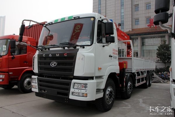 华菱8x4 随车起重运输车,搭载了汉马CM6D18 345马力发动机,后桥采用了汉马HL300A铸钢中后桥,后桥速比为5.263。