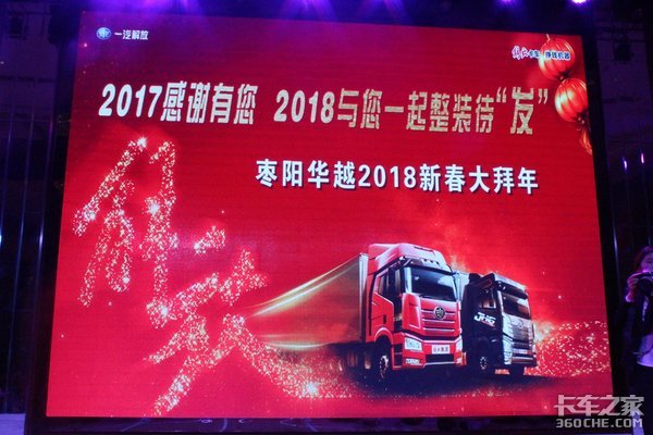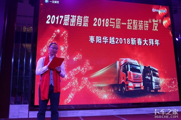 【卡车之家 原创】为感谢客户一直以来对一汽解放的支持及新老用户对解放品牌的认可,加强与客户间的合作,枣阳华越专用汽车有限公司于2018年2月6日在襄阳市空港晶华国际酒店举办了一场“2017感谢有你·枣阳华越2018新春大拜年”活动。