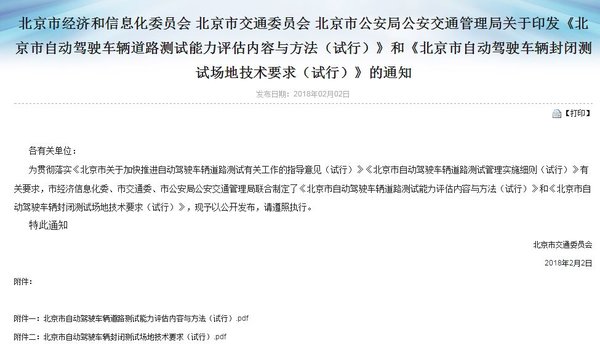 【卡车之家 原创】近日,北京市多部门联合发布了《北京市自动驾驶道路测试能力评估内容与方法(试行)》和《北京市自动驾驶车辆封闭测试场地技术要求(试行)》。