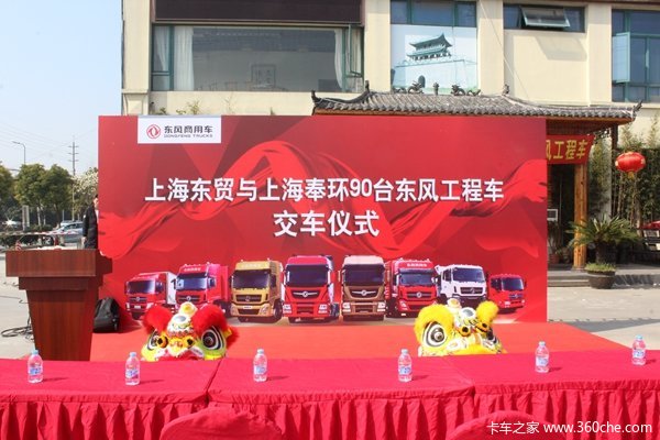 【卡车之家 原创】城市的美丽离不开环卫工作者的努力和辛劳,2017年3月10日,上海奉环携手东风商用车,在上海奉泾环卫所举行了一场盛大的接车仪式,车辆由上海东贸鸿安汽车销售服务有限公司提供,本次共交付90辆东风工程车。