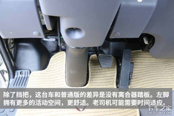 驾驶室和普通版最大差异在于挡把,自动驾驶模式时解放了右手和左脚,可以很大程度降低驾驶强度,常在市区拥堵路段行驶的效果则更明显。即使是手动模式状态下行驶,挡位的切换依然不需要人为操作,比手动变速箱“聪明”许多。