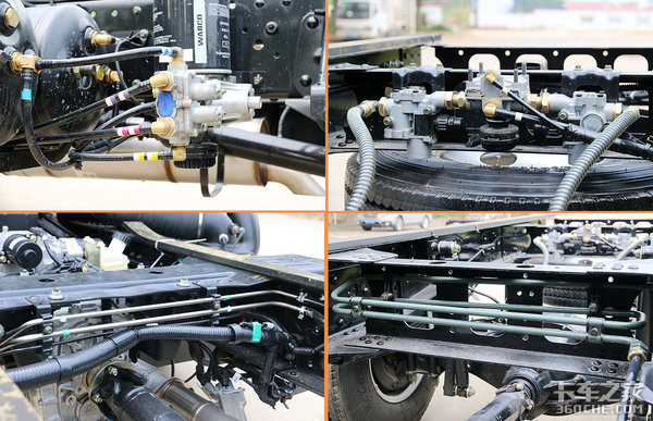 主要零部件均采用WABCO(威伯科)产品,在同级轻卡中较为少见。各类管路的布置较为清晰,固定稳妥,易混淆的部分则采用了颜色区分,设计算是细心。