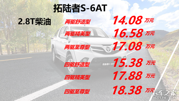 作为唯一一家深耕美式皮卡领域多年的皮卡品牌,福田拓陆者拥有行业内首屈一指的工艺品质与深厚的技术底蕴。依托“福田工业4.0”前瞻战略以及全球创新联盟的研发优势,拓陆者S-6AT融汇了全球领先技术精华于一身,以更极致的越野性能和更实惠的使用成本,为消费者量身打造的一款“性能与性价比兼具的美式皮卡”。此次发布的拓陆者S-6AT共六款车型,售价14.08万元起。