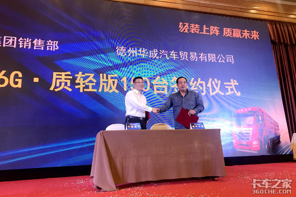 在活动的最后,中国重汽豪瀚与德州华成汽车贸易有限公司签订150台豪瀚J6G质轻版载货车的承销协议。