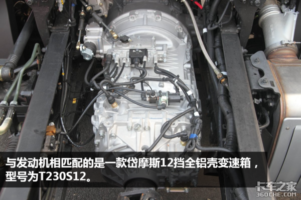 这款车最大的亮点并不是驾驶室,更多的是它的传动系统以及轻量化底盘。此次,这台载货车搭载的是一台440马力的发动机,以及岱摩斯的12挡手动变速箱。另外,现阶段现代480马力以及520马力段的发动机都换用了铝制油底壳,重量更轻。