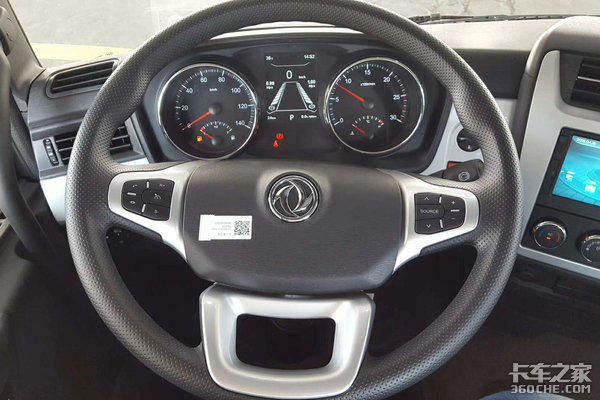 三幅式的方向盘也是黑色和银色的双色设计,造型也偏向于乘用车。多功能按键的加入可以让驾驶车辆更加安全,左边为接挂电话以及定速巡航,右边为多媒体控制按键。