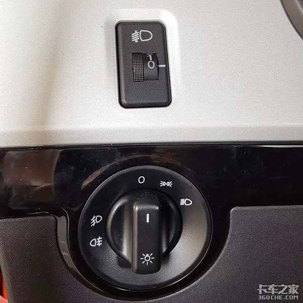 天锦KR灯光组合开关从方向盘下的手柄移植到了左面板上,采用旋钮开关,也可以看出来这是天锦从日系设计向欧系设计转化的一个过程。