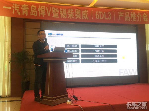 【卡车之家 原创】2018年4月24日,一汽解放锡柴和哈尔滨金超汽车销售有限公司在哈尔滨地区联合举办了“一汽青岛悍V暨锡柴奥威(6DL3)产品推介会,”此次活动是为了促进锡柴奥威机(6DL3)在青汽悍V产品的销售,提高双方品牌知名度和市场占有率,共有60余人参加了次此活动。