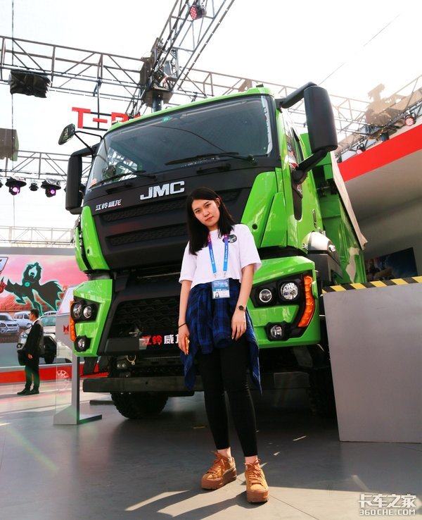 在三辆展车中,这辆绿色的6X4自卸车更吸引人。据了解,这辆6X4自卸车的代言人是“绿巨人”。在展会现场,不少观众与“绿巨人”江铃威龙自卸车合影,这辆自卸车,一不小心成了车展网红。
