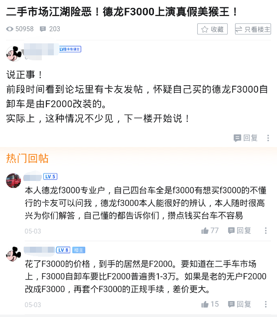 【卡车之家 原创】有人的地方就有江湖!近日某卡友在论坛发表一篇教学帖——《二手市场江湖险恶!德龙F3000上演真假美猴王!》让人瞠目结舌,道出二手车市场某些陕汽德龙F3000背后的故事。