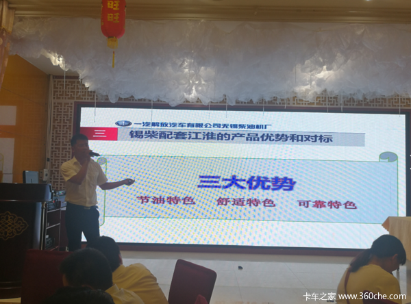 5月20日,江淮重卡与一汽锡柴在江西高安联合举办了一场江淮重卡暨锡柴动力产品推介会,一汽锡柴生产部部长蒋伯明、锡柴策划室专员张瑞杰、一汽锡柴江西公司营销经理吴保永、一汽锡柴江西分公司品牌经理侯宽圆、江淮江西大区总监丁清、江淮江西大区销售经理王波莅临现场全程参与活动;