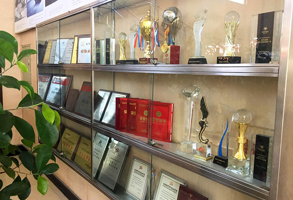 而缴费一侧的角落处还放置了荣誉展示柜,里面收纳了该公司获得的各种奖项,强调着这是一家极具实力的销服一体化经销商。
