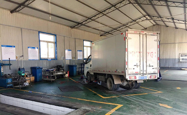 看完了车辆,贾老板来到了维修车间,探寻一下车辆的后期服务情况。