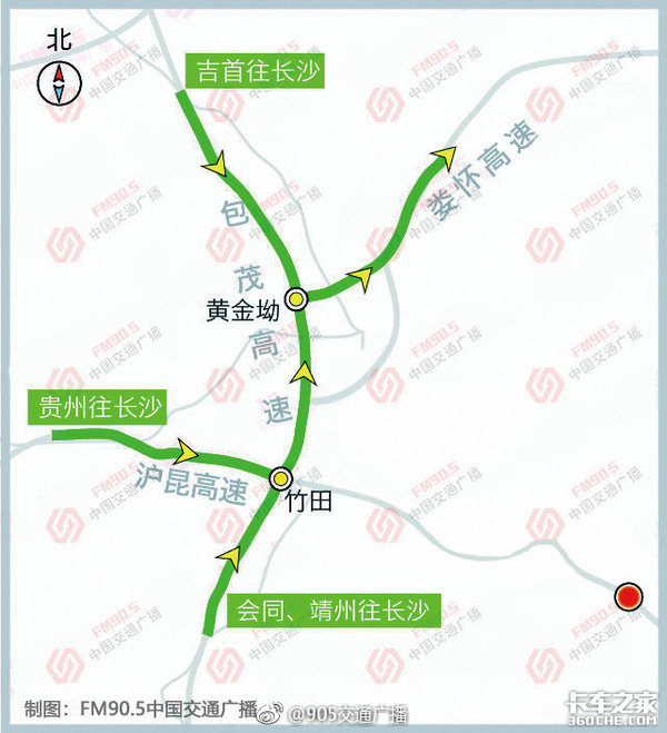 由于事故处理仍需要一段时间,现场已进行临时交管制,请过往车辆提前绕行。会同、靖州、贵州往长沙方向的的车辆,从黄金坳转到娄怀高速绕行;吉首往长沙方向的车辆,通过黄金坳转至娄怀高速绕行。请过往司机相互转告。