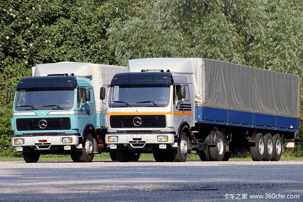 第二代车型在1980年推出,被称为“NG80”,这也就是当年我国引进的车型版本。德国当地的奔驰NG80提供了375马力的新系列发动机,外观也有所变化。半挂牵引车的底盘经过重新设计,高度降低了120毫米。
