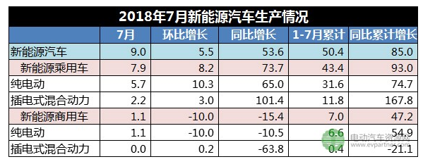 导读:8月10日,电动汽车资源网从中汽协了解到,7月,新能源汽车产销分别完成9万辆和8.4万辆,比上年同期分别增长53.6%和47.7%。