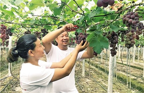 借助航空货运,浦江葡萄成功进入新加坡、韩国、马来西亚等“一带一路”相关国家市场。图为靓松家庭农场农场主陈青松正在采收葡萄。记者 吉蕾蕾 摄