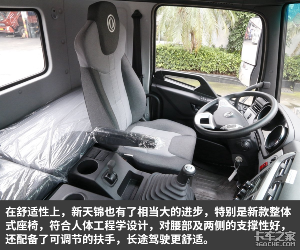 如同外观一般,在内饰方面,东风新天锦也进行了许多优化,包括了内饰整体设计、舒适性等,一切都为了用车品质得到提升。