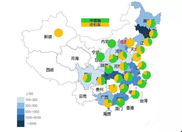 从区域分布上看,轿运车主要集中在乘用车重要生产地以及乘用车需求量较大地区,东北、华中和西南地区需求以轿运牵引车为主,其他地区则主要以中置轴轿运车为主。