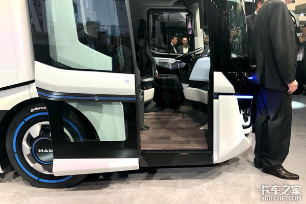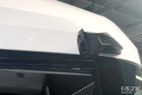 车灯的造型也凸显着新能源的符号,蓝色的LED光源,不过车灯的整体造型与德国曼重卡还是比较相似的,大眼方灯似乎已经是德国曼的符号。