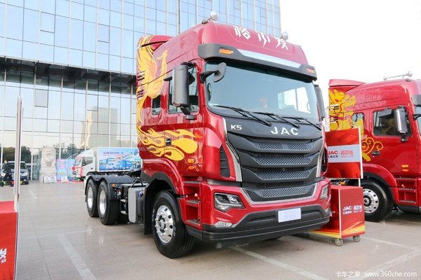 格尔发A5III麒麟版,前脸格栅采用黑色与银色相互交替,搭配整车的江淮红以及麒麟图腾、稳重、大气而又不失科技感,打破了国产卡车外观的单调和局限性。