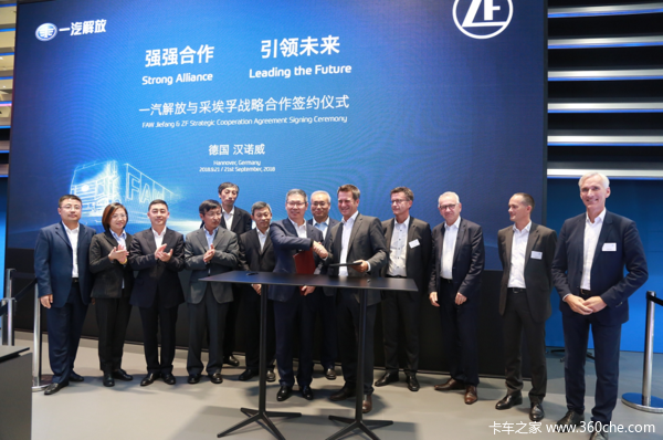 继昨日与世界顶级汽车控制系统供应商威伯科达成战略合作,今日汉诺威国际商用车展期间,一汽解放再与采埃孚股份公司正式达成战略合作。一汽解放董事长胡汉杰与采埃孚全球商用车技术事业部执行副总裁Fredrik Staedtler正式签署战略合作框架协议。