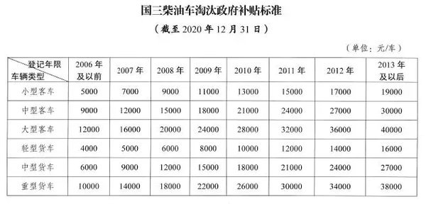 根据淘汰车辆的车型、使用年限给予差别化政府补贴,补贴标准为:国二汽油车2750-9500元/车,国三柴油车4000-40000元/车。拆解企业收购价格按市场化机制运作。