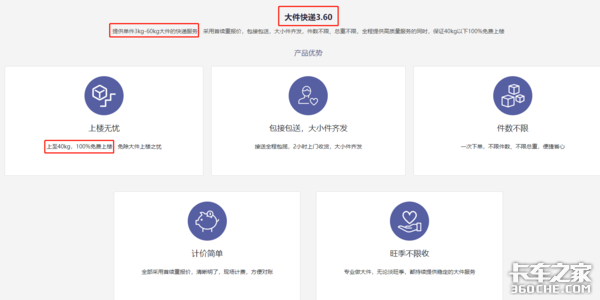 为了新布局,德邦物流直接改名为德邦快递,并发布大件业务,命名为“大件快递3.60”,提供单件3kg-60kg大件的快递服务,40kg以下100%免费上楼。