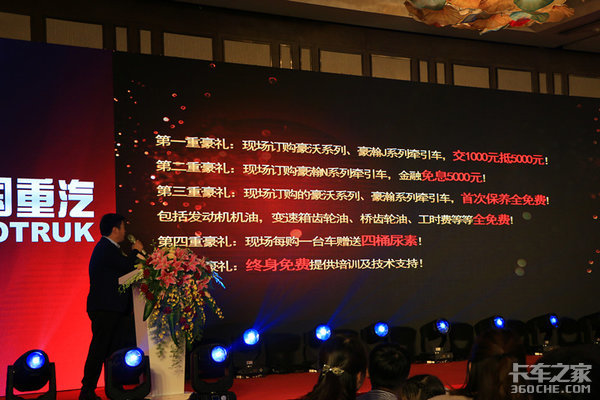 第一重豪礼:现场订购豪沃系列。豪瀚J系列牵引车,交1000元可抵5000元