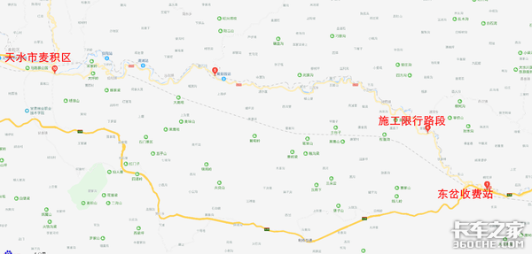 2009年连霍高速天水到宝鸡段开通,但由于该段地形复杂、隧道众多,高速的过路费用也相对较高,因此对货物时效性要求没有那么高的司机通常会选择走这条国道,由于近几年交通量增长较快,近日,在安全排查工作中,部分区域开始限行。