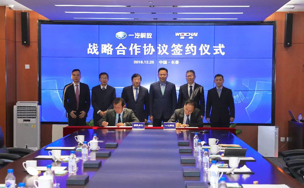【卡车之家 原创】根据潍柴公众号官方消息:2018年12月26日,潍柴动力与一汽解放在吉林长春签署战略合作协议。