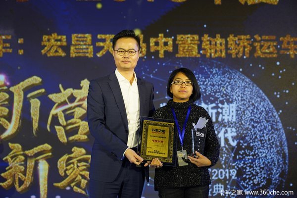 【卡车之家 原创】2019年1月10日,卡车之家“新营销 新零售——数字新潮 重塑时代”2019新营销盛典在北京盛大召开。在此次盛典上,宏昌天马中置轴轿运车被评选为“卡车之家2018年度车型(专用车)”。