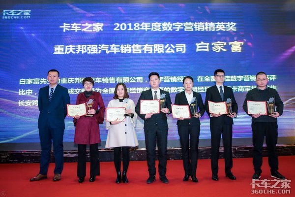 【卡车之家 原创】2019年1月21日,在卡车之家第二届渠道数字营销盛典上,来自重庆邦强汽车销售有限公司网销主管白家富先生获得了“卡车之家 2018年度数字营销精英奖”,成为线上成交数量为全国微卡经销商最高的数字营销经理,年度卡商宝共计销售长安跨越120台。