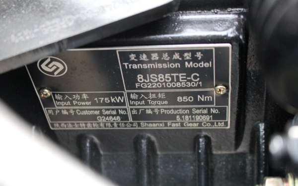 2、法士特变速箱8JS85TE带同步器,驾驶舒适,操控性更好,变速箱输入扭矩大,动力传输能力更强。变速箱四点悬置承载能力强,车辆稳定性好。