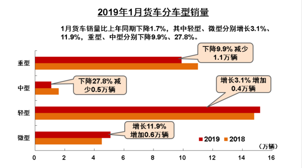2019年2月18日,中汽协发布2019年1月货车产销数据。