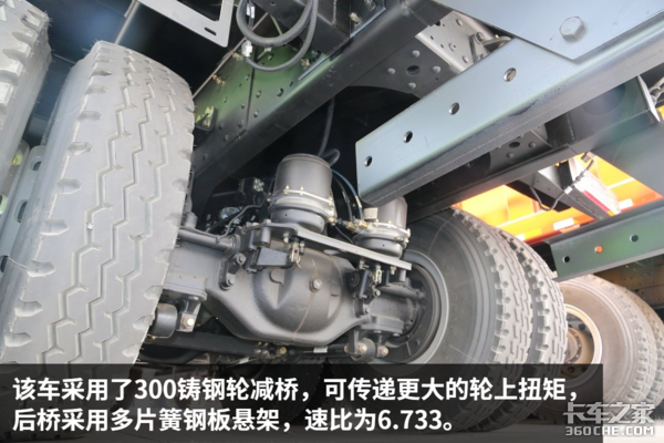 该车搭载了锡柴CA6DM2-42E51发动机,其最大输出功率为312kW,最大马力420马力,最大可达1900N·m的扭矩输出,满足国五排放标准。由于该车是定位于山区运输,所以大马力、大扭矩能让它在复杂路况输出强大的动力。