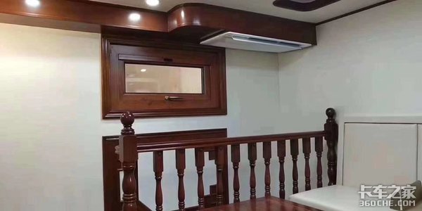 原来这位卡友把挂车改装成了一个豪华式移动城堡,从透漏出的照片中能看出,挂车内部是分为上下两层的,并且内部的装潢是以实木为主,并且稍微带些古典风,这个位置应该是二层楼梯拐角的休息区。