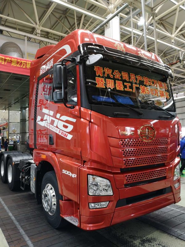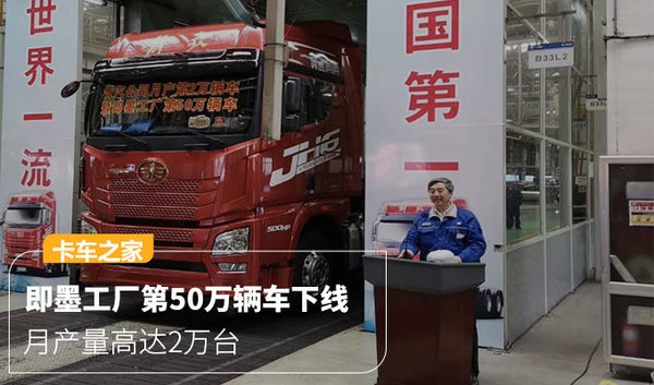 【卡车之家 原创】2019年3月30日,青汽解放即墨工厂第50万辆车正式下线,并且该车也是青汽公司月产第2万辆车,这台解放JH6标志着即墨工厂月产2万台的超高产能,同时也说明了市场对于解放青汽的产品认可。