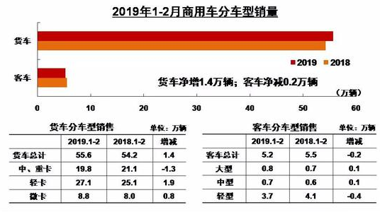 从中汽协发布的数据看,2019年1-2月,卡车行业销量虽环比有所下降,但同比略有增长。分车型来看,轻微卡与中重卡明显表现出不同的走势,中重卡同比下降1.3万辆,轻卡销量增加1.9万辆,微卡销量增加0.8万辆。在不同板块的“中和作用”下,整体卡车行业维持了基本稳定。