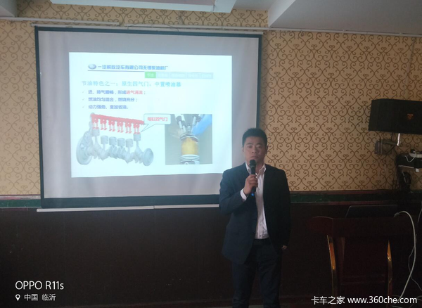 锡柴山东分公司品牌经理侯宽圆对江淮格尔发K5配套的恒威奥威6DLD/6DL/6DM系列国五产品做了详细介绍,重点围绕节油性、舒适性和可靠性三方面做重点介绍,让江淮格尔发用户对锡柴机经济性、动力性、可靠性、安全性等有了更加深入的了解和体验。