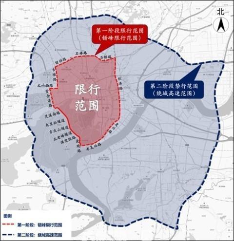 第一阶段,2019年5月5日起,早4:00至晚24:00禁止在当前“错峰限行”区域内通行;