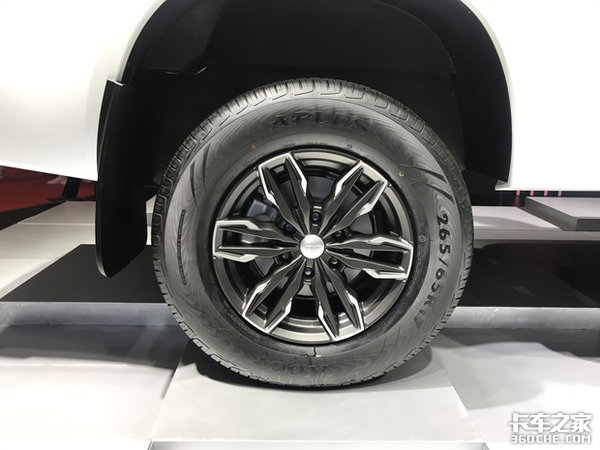 轮胎采用了艾普乐265/65R17尺寸轮胎,粗犷的六幅铝合金轮毂又增添了整车的硬派气质。