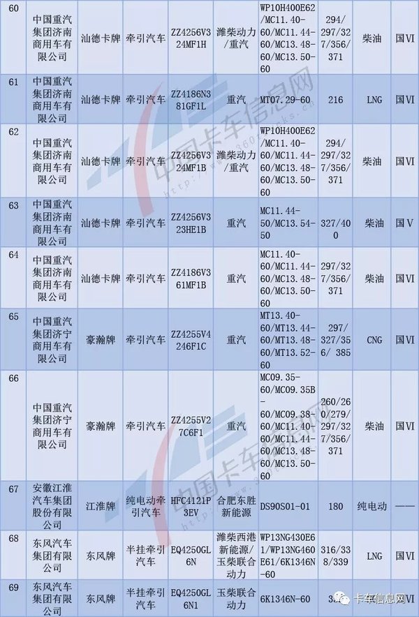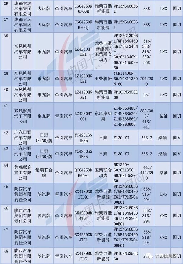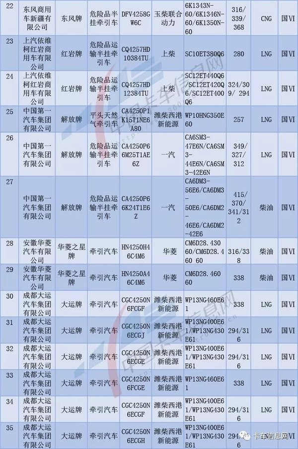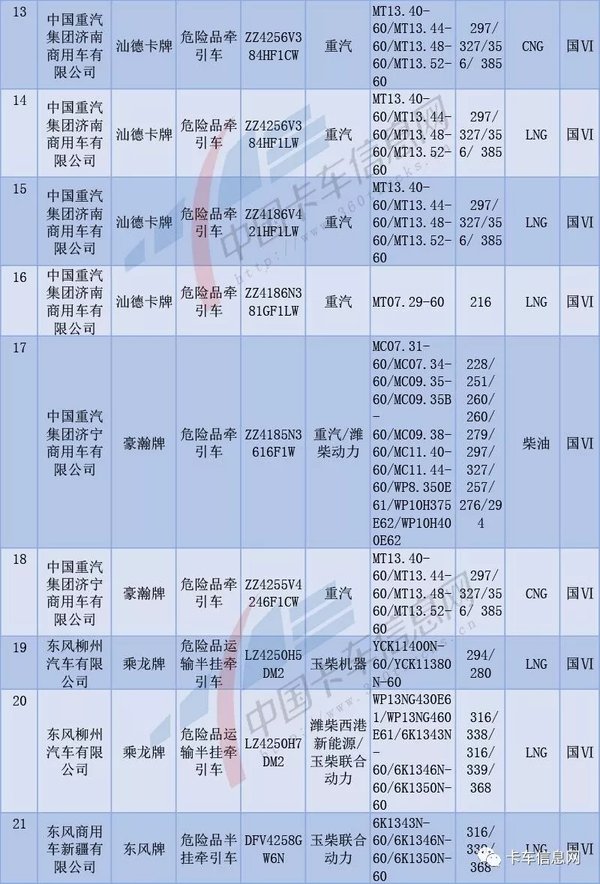 分别来自:中国重汽、陕汽集团、东风汽车、大运汽车、一汽解放、上汽红岩、福田戴姆勒、北奔重汽、安徽华菱、广汽日野、江铃重汽、集瑞联合、一汽凌源、吉利商用车、江淮汽车。