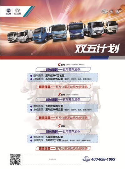 用户可以享受长达5年的整车超长质保和5万公里发动机免费保养,涉及范围除了原有的S全系、上汽、云内蓝芯动力的C系、X系产品外,首次将潍柴动力的C系产品纳入“双五计划”;