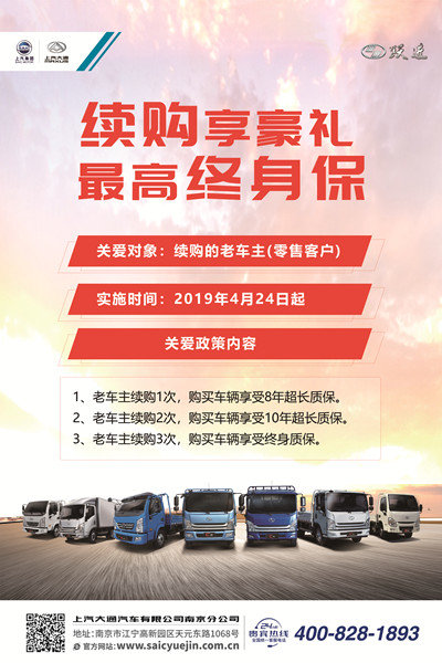 再次,“0”是指分期零利率,用户首付最低10%可购买上汽跃进主销产品,且享受12期0利率的支持,2019年重点产品C500Plus可享受24期0利率服务。